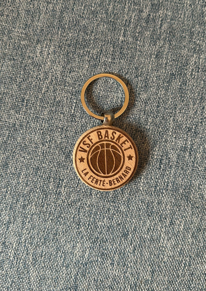 Porte clé en bois gravé VSF Basket avec possibilité de le personnaliser avec un prénom