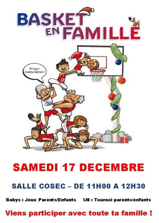Cet évènement est destiné aux enfants de l'école de basket du samedi matin. Ils pourront fouler le parquet en compagnie des membres de leur famille et ainsi jouer ensemble.