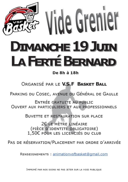 Le VSF BASKET organise son annuel vide grenier le DIMANCHE 19 JUIN sur le parking de la place Général de Gaulle.