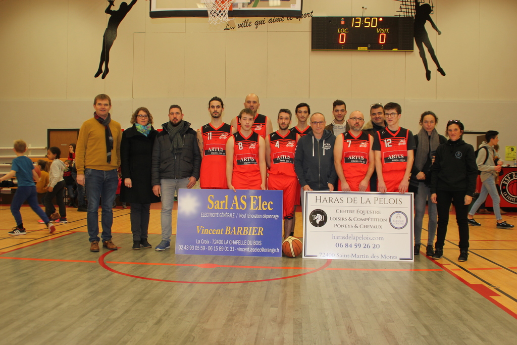 Ce samedi 15 décembre 2018, un pot de l'amitié a scellé le partenariat avec 2 entreprises de la région, l'entreprise d'électricité générale AS ELEC, domiciliée à la Chapelle du Bois et le HARAS DE LA PELOIS, situé à St Martin des Monts. Leurs panneaux respectifs ont été présentés à l'ensemble de l'assistance. Ils seront installés en hauteur,à côté de nos autres partenaires, afin d'avoir une visibilité parfaite pour l'ensemble des visiteurs dans la salle Maurice Loiseau (COSEC).