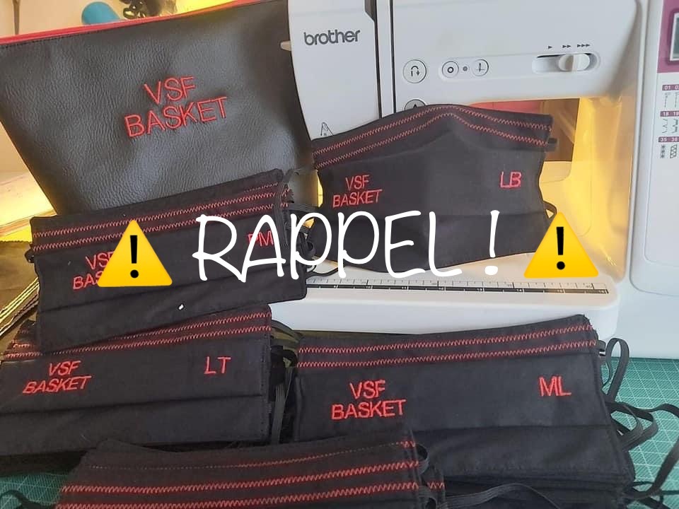 Si vous ne vous souvenez plus de votre commande, n’hésitez pas à nous contacter (animationvsfbasket@gmail.com) et nous vous informerons du nombre de masques commandés ainsi que du tarif total.