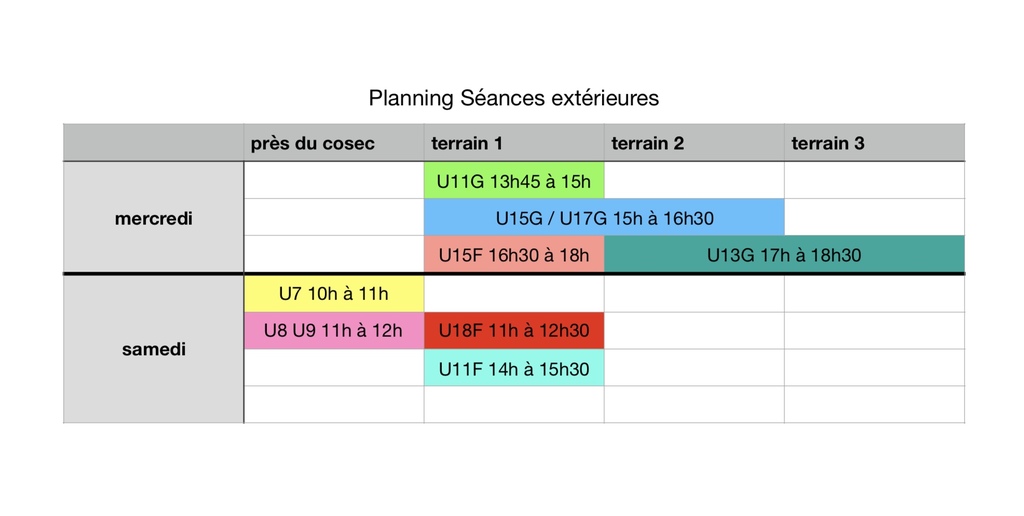Nous avons élaboré un planning d’entraînements en fonction des disponibilités des encadrants.