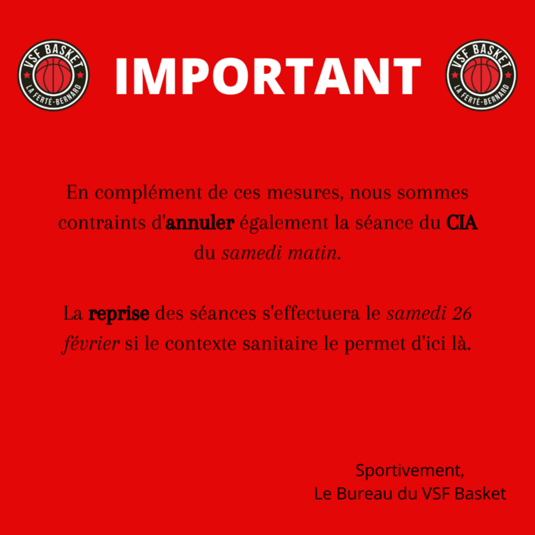 Après consultation de Thierry SINEAU, formateur au Centre d'Initiation à l'Arbitrage, les séances du samedi matin sont annulées. Une reprise est prévue le 26 février.