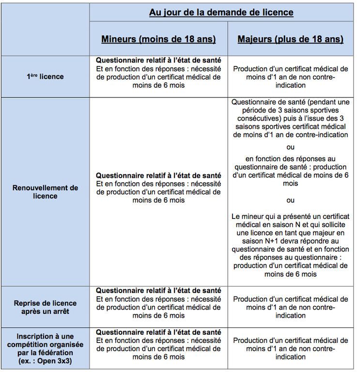 Afin d'encourager la pratique sportive des jeunes, il a été annoncé par le Ministère chargé des Sports la fin de l'obligation de présentation d'un certificat médical de non-contre-indication à la pratique sportive pour les mineurs qui souhaitent prendre une licence dans un club sportif.