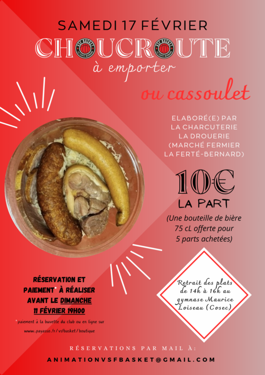 Les réservations se font par mail à l’adresse mail suivante : animationvsfbasket@gmail.com