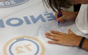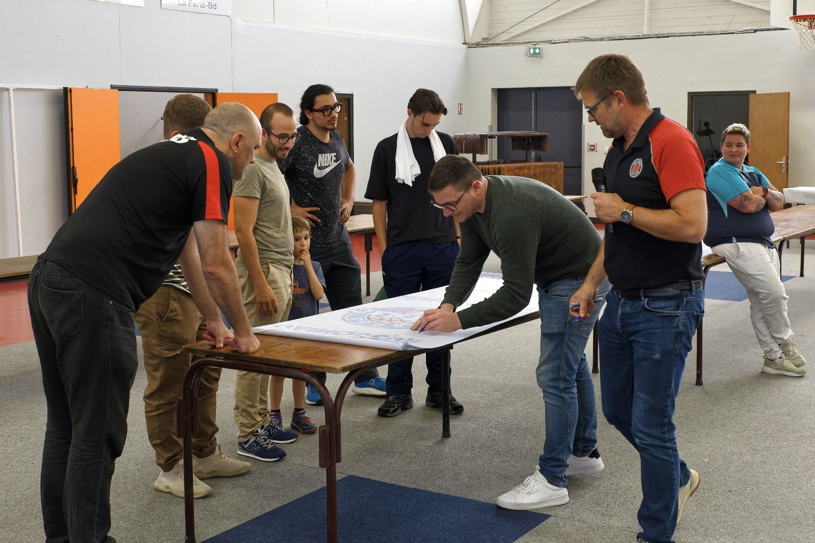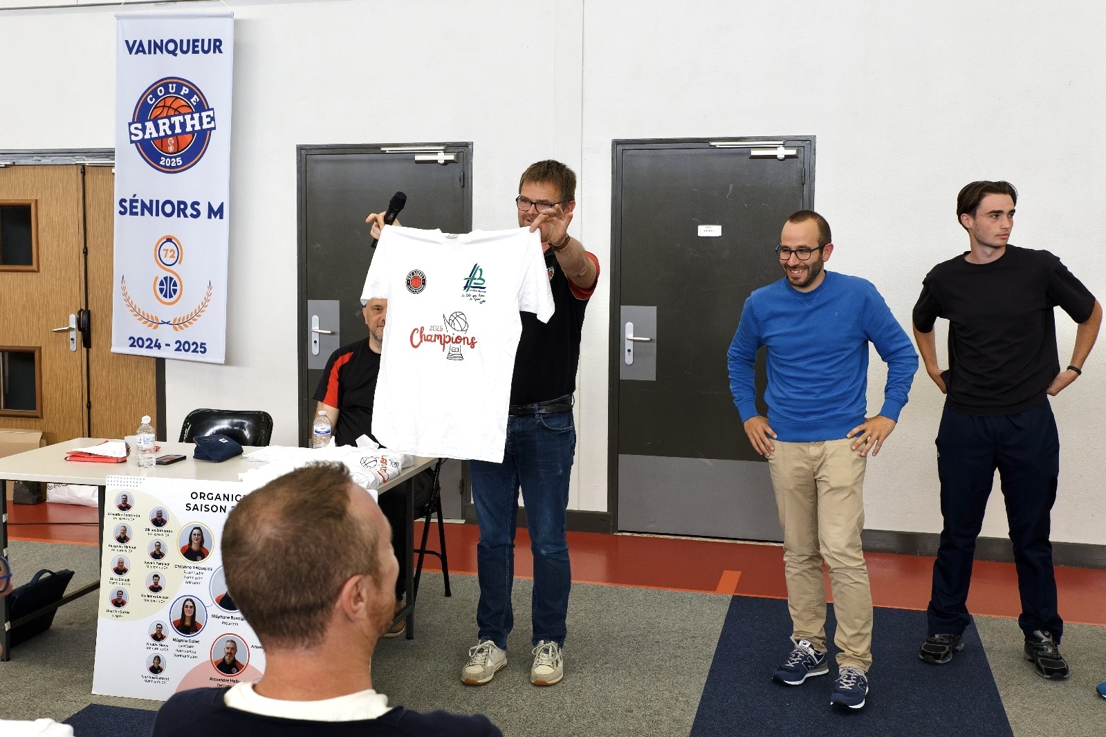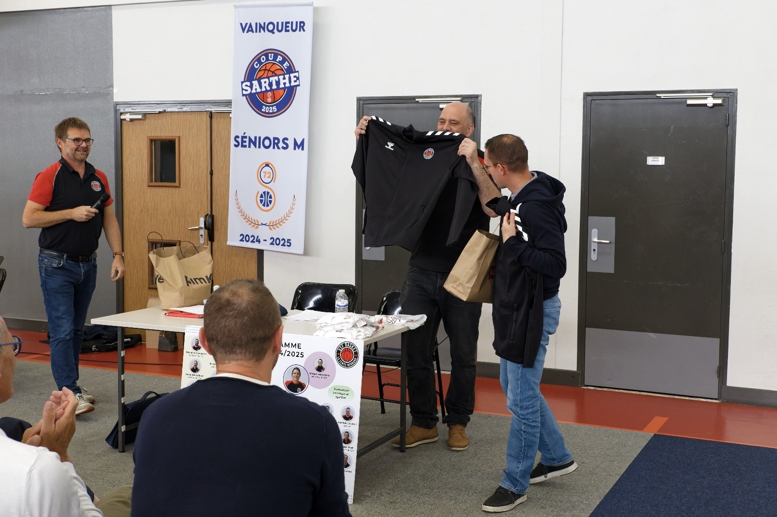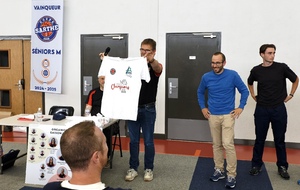 Les Seniors M ont eu la surprise de recevoir des maillots personnalisés pour leur victoire en Coupe de Sarthe, et ont signé leur bannière de Vainqueur